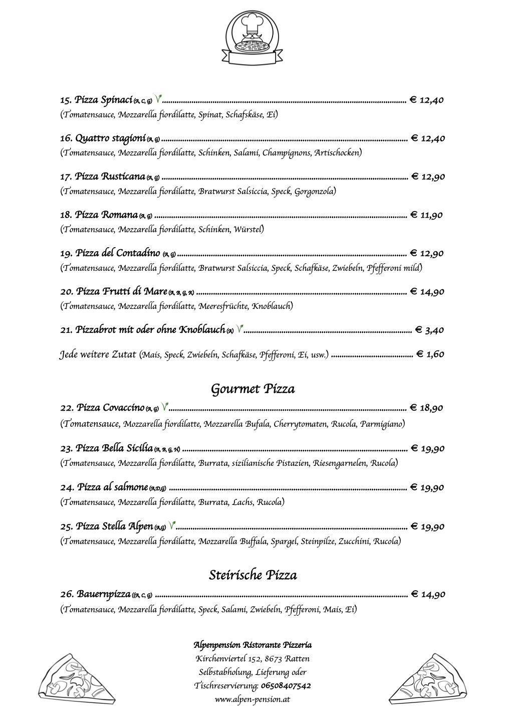 Öffnungszeiten: Mo: GESCHLOSSEN, Di-Fr: 17:00-21:00, Sa, So: 11:00-21:00, (gilt nicht für die Gäste mit HP bzw. VP)