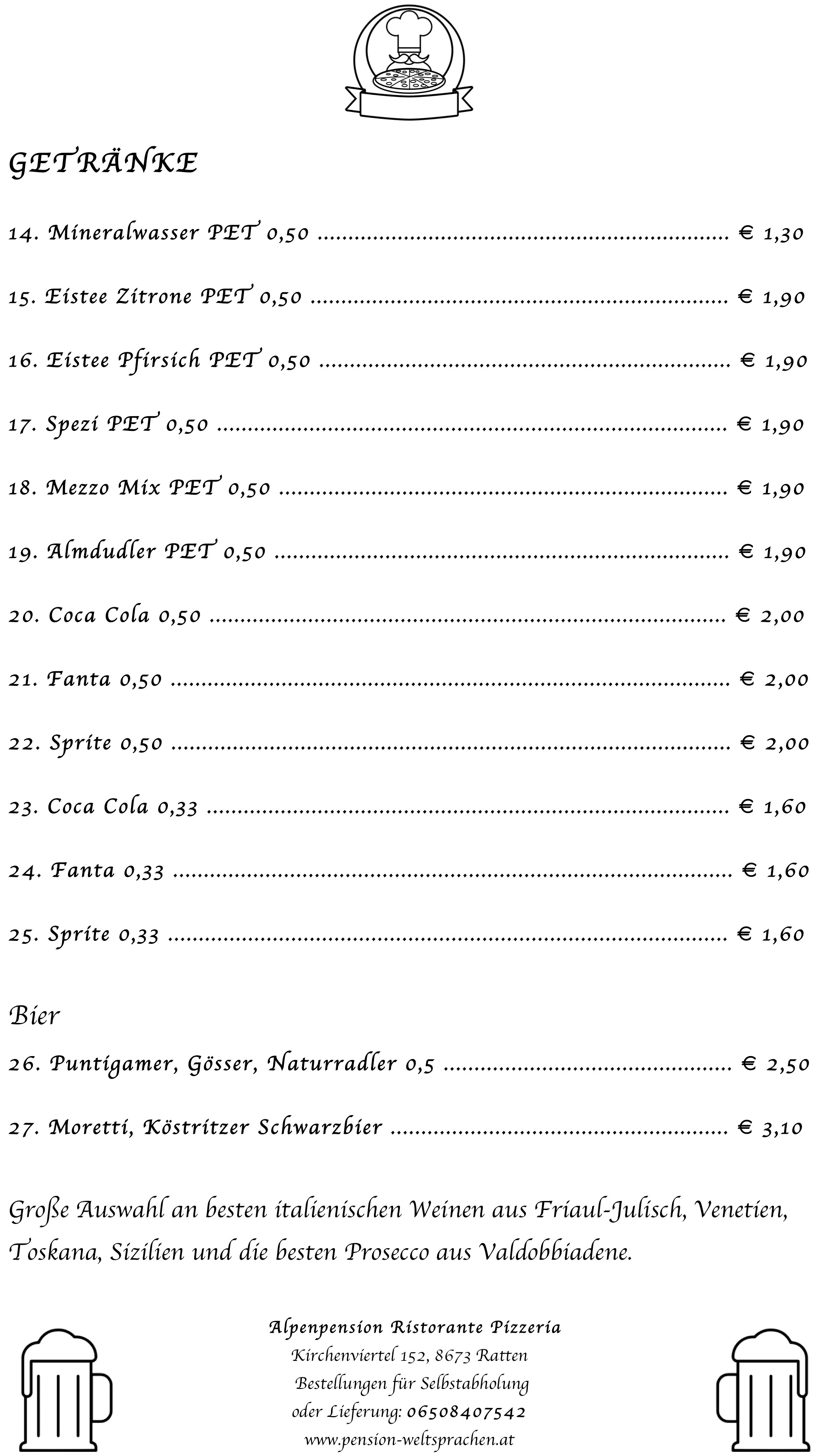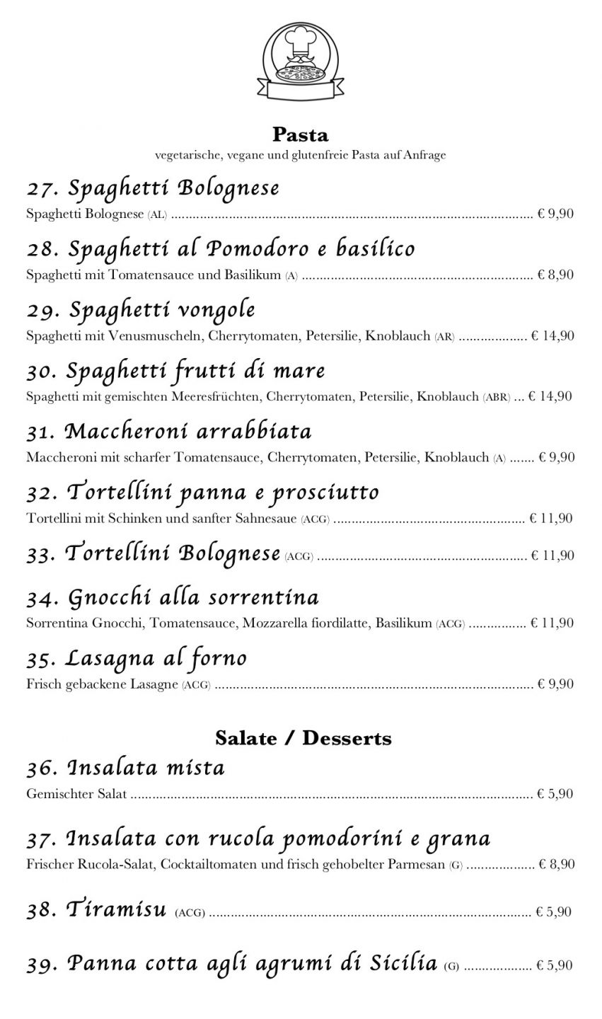 Unser Koch aus Sizilien freut sich euch mit ausgezeichneten Speisen nach italienischer Art zu verköstigen.