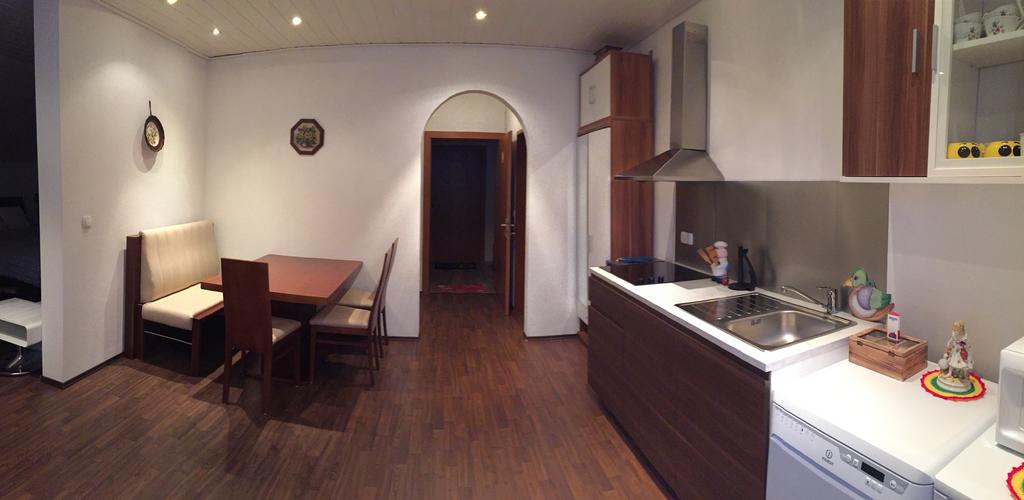 Zimmerausstattung: Tisch, Stühle, Küche, Kühlschrank, Geschirrspüler, Geschirr, Kleiderschrank, Vorzimmerschrank, Bad/WC getrennt, Pflegeprodukte, Fön.